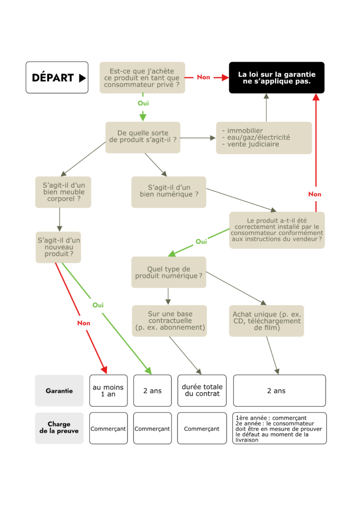 En cas de défaut, le vendeur est tenu de réparer ou de remplacer gratuitement la marchandise (au choix du consommateur, dans la mesure du possible et du raisonnable).